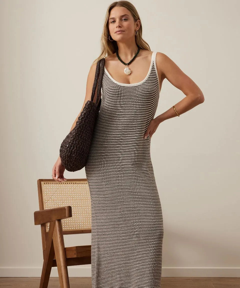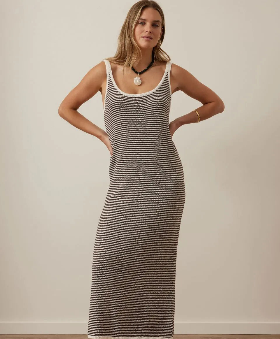 FIA STRIPE KNIT MIDI DRESS/CHOCOLATE ECRU STRIPE