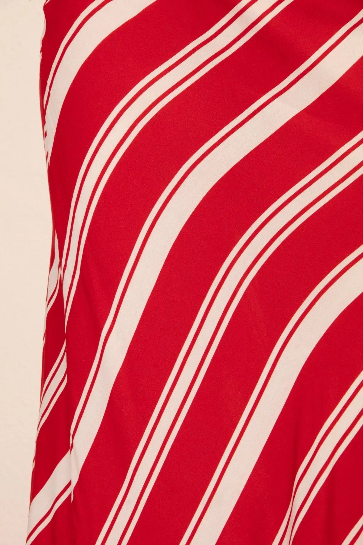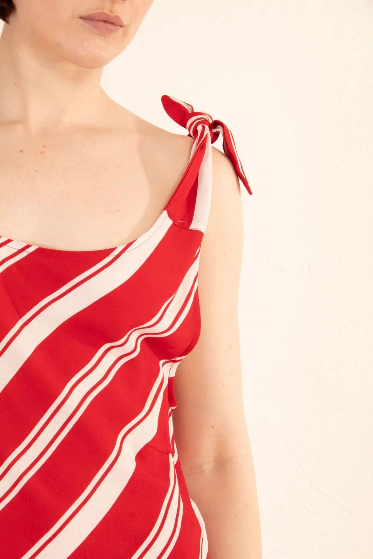Tie-shoulder maxi dress Diagonal red and white stripe print Fabric: Shell - 100% Rayon Ratio: 1:1:1:1:1 (Size 6 -Size 14) Model is 173cm height and wearing size 8