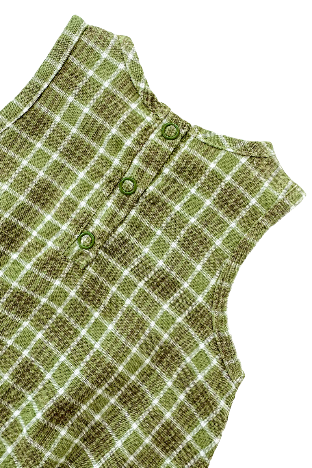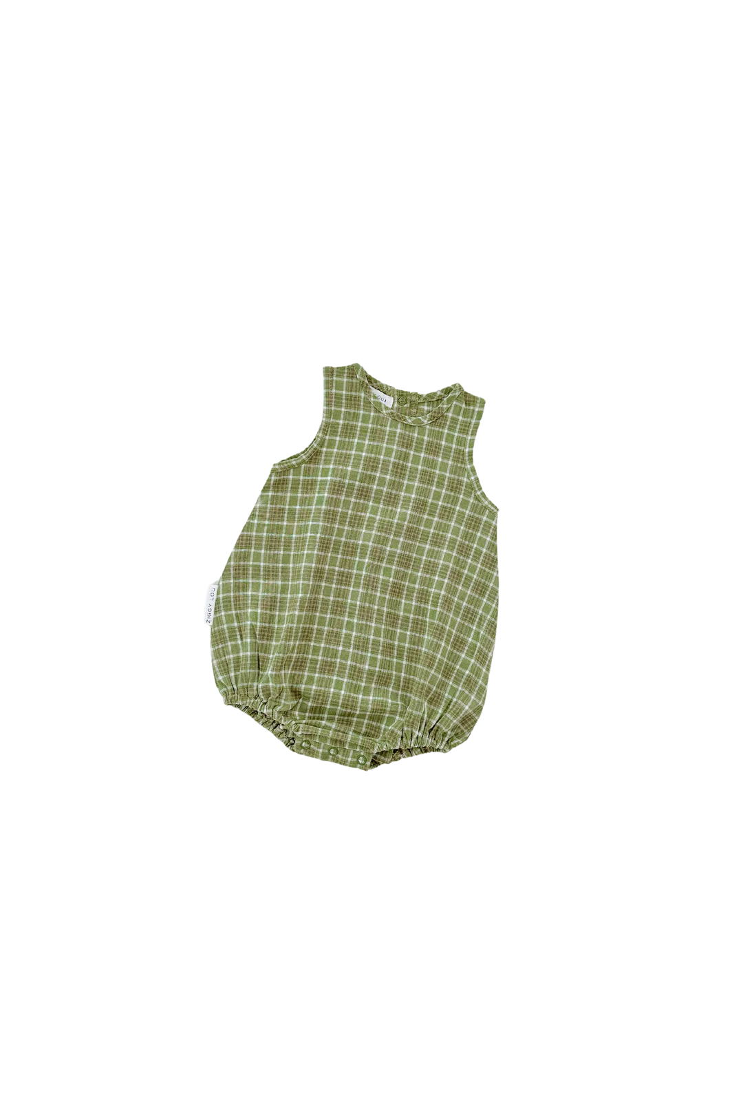 Cotton bubble romper in our Thyme fabric. Functional snap buttons at back of neck and crotch for easy on/off and nappy changes. Mix and match with items from our Christmas Collection.