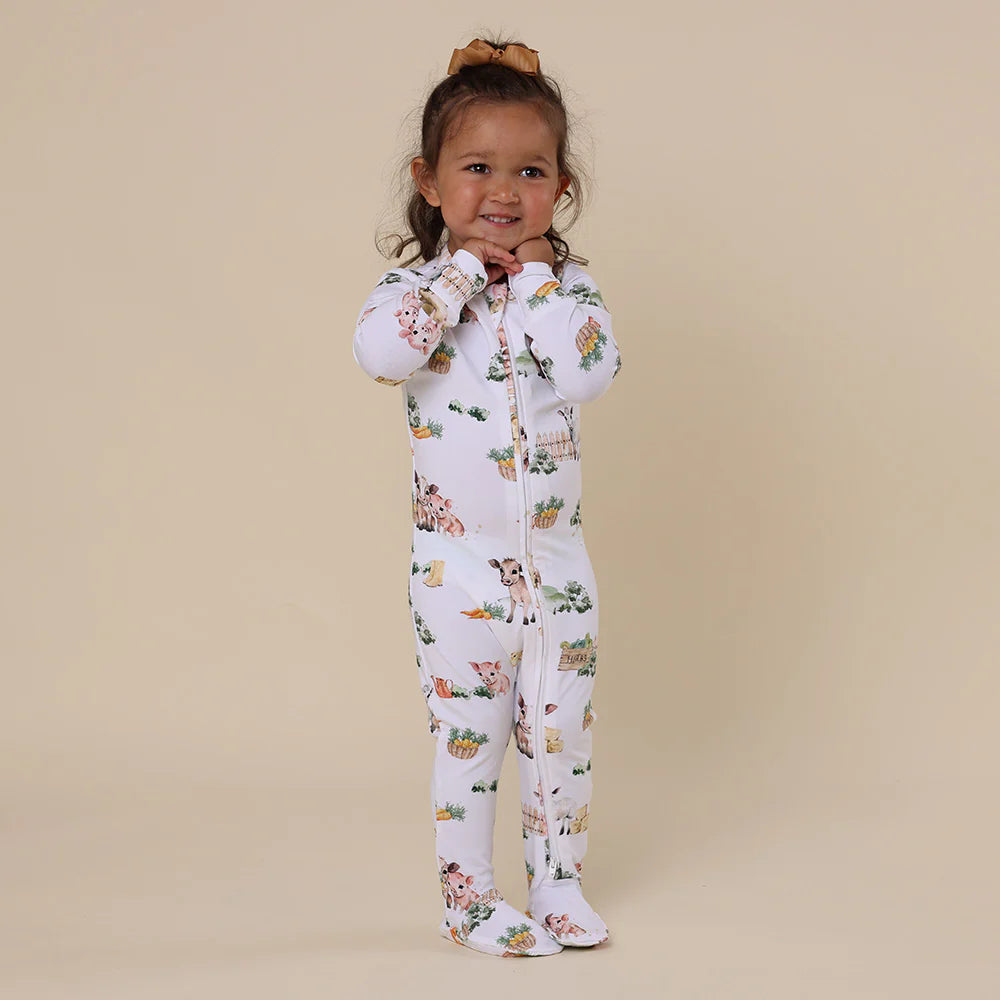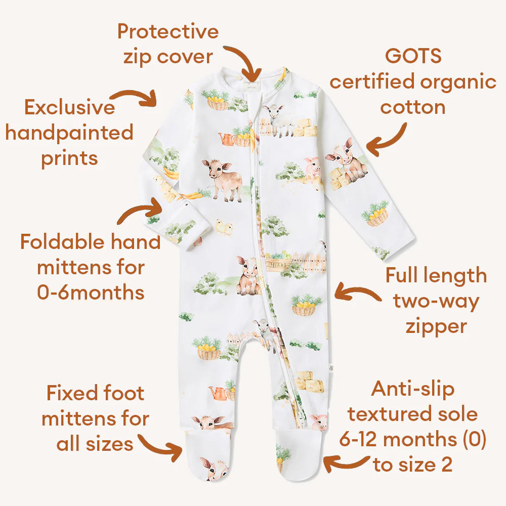 Organic Snuggle Sleepsuit Zip Footie | Farm