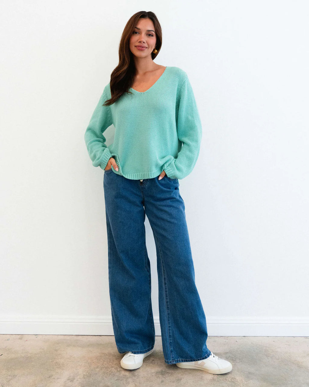 Riviera Embroidered Box-Cut Tee - Green / White - Apero
