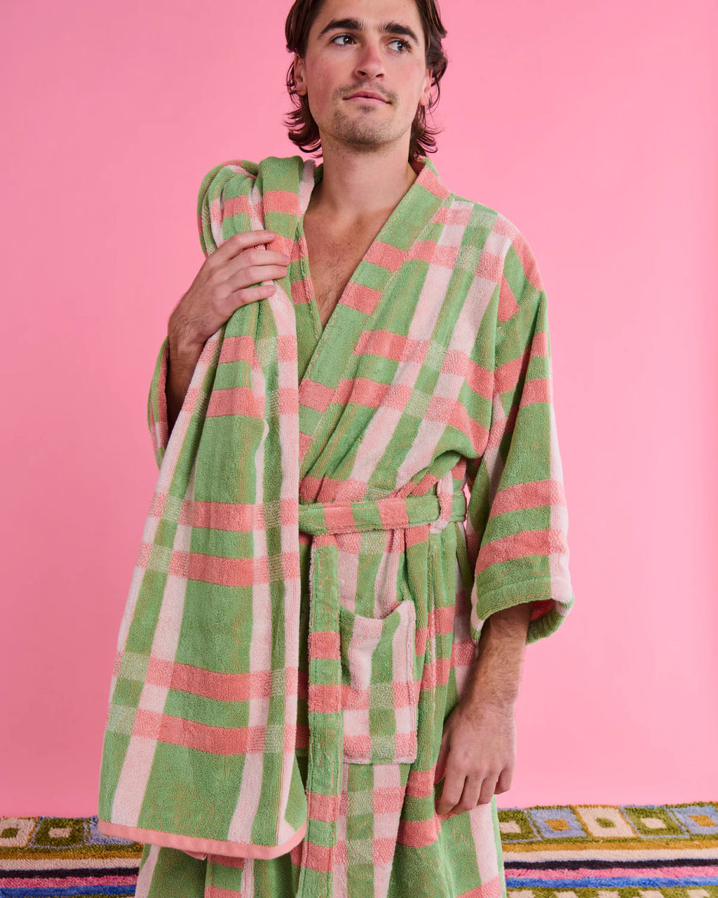 Pistachio Tartan Terry Bath Robe