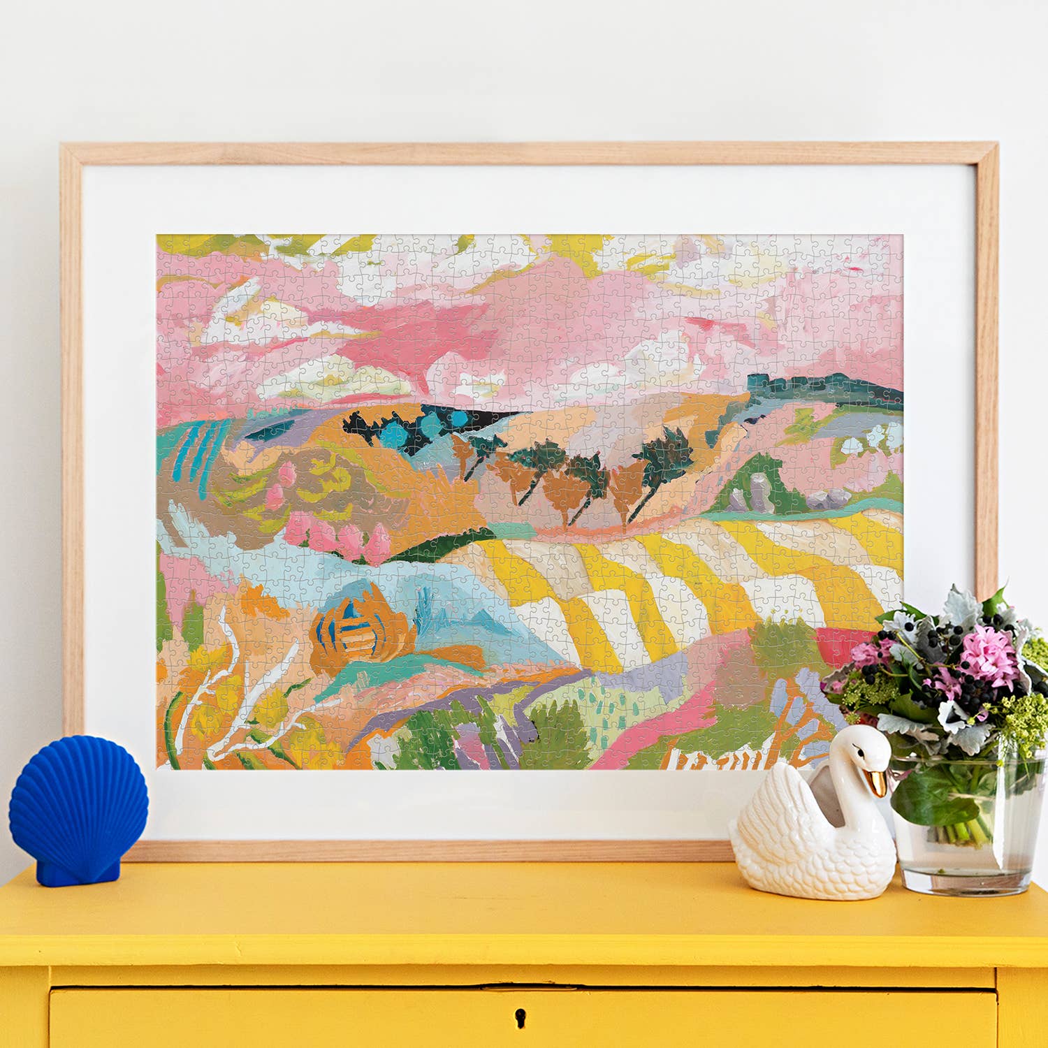 Named after the artist's grandmother, Betty perfectly captures the undulating Australian landscape. Exercise your mind and excite your eyes. Or share the love, 1000 piece puzzles make the BEST gifts. About the artist Robyn Kylie is based on Dja Dja Wurrung land in the Macedon Ranges, Central Victoria. Her art is about the Australian landscape and the birds and animals that live on it. Her painting style has an Australiana flavour with a contemporary and happy slant. Additional Info 50 x 70cm (finished size of puzzle) Artist Designed Brain Training Australian Owned Female Owned and Operated